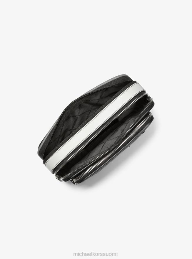 harvat tyylit ovat yhtä käytännöllisiä kuin vyölaukut, etenkin kiireisinä päivinä kaupungissa tai lomalla. Hudson-kantopakkaus on valmistettu urheilullisesta logopainatuskankaan ja sileän nahan yhdistelmästä. Mk-logolaitteistolla viimeisteltynä siinä on yksi säädettävä hihna, jonka avulla voit käyttää sitä rinnassa tai selässä.