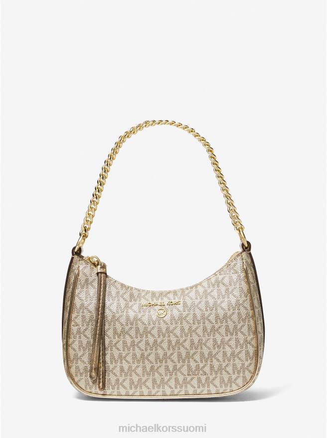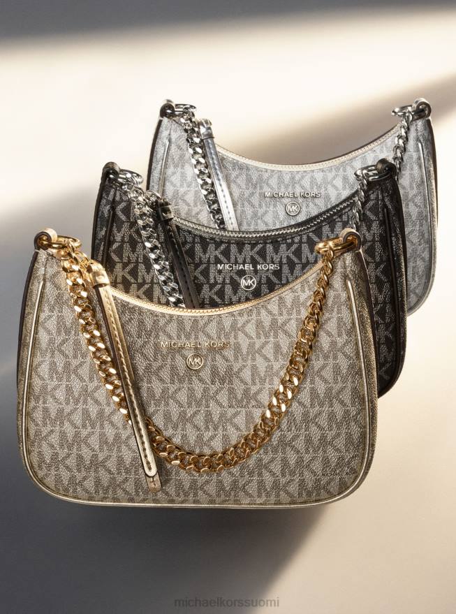 tasa-arvoiset osat ovat ajattomia ja trendikkäitä. Metallinen jet-settimme charmipochette on moderni versio vaatekaapin ikonista. Se on suunniteltu kompaktiksi, jäsennellyksi siluetiksi naiselliseen tyyliin, ja se on viimeistelty kullatulla ketjulenkillä, joka luo ylellistä vetovoimaa. loputtoman monipuolinen, muotoile se sekä mekkojen että farkkujen kanssa.