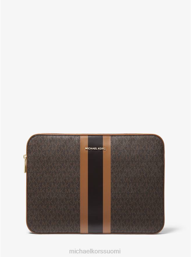 varusta tekniikkasi tyylikkäästi jet set -kannettavan kotelomme avulla. Tämä kotelo on valmistettu logopainatuskankaastamme, jossa on kontrastiset keskiraidat, ja siinä on vuorattu ja taskullinen sisäpuoli, joten voit säilyttää muutamia välttämättömiä tarvikkeita kannettavan tietokoneen rinnalla.