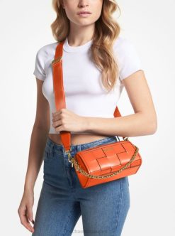 Lisätarvikkeet Michael Kors jet-setti pieni kudottu nahkainen crossbody-laukku optinen oranssi naiset Z682879