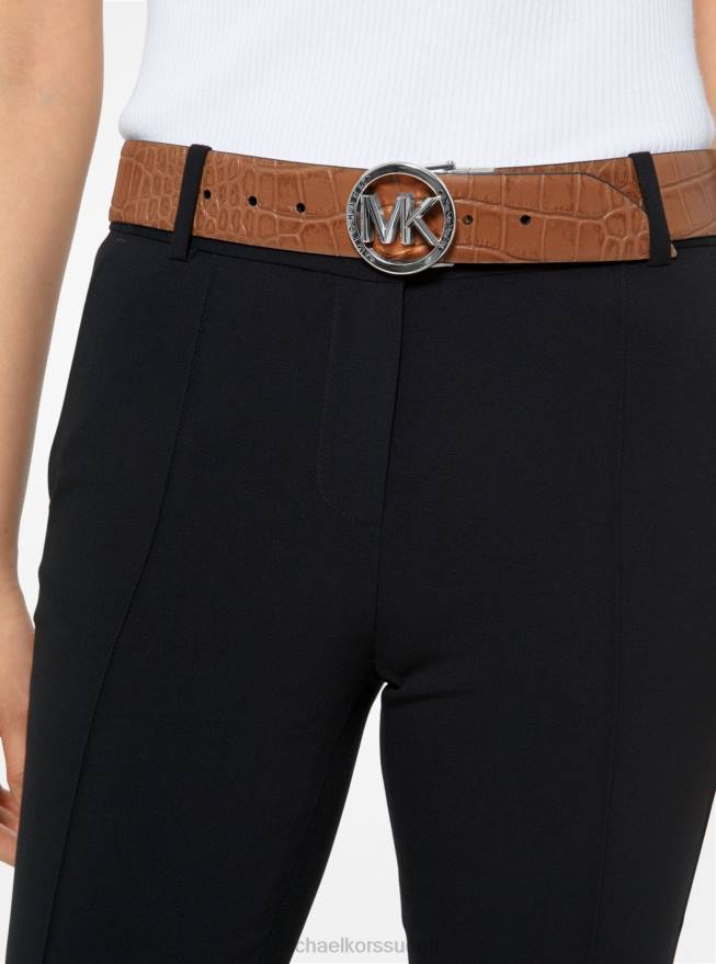 jossa on tunnusmerkkimme logopainatus, ja tämä vyö kääntyy krokotiilin koristeelliseksi nahkapuolelle, mikä tekee siitä tuntuvaa. kiillotettu viehätyssolki tuo tähän tyyliin uutta vetovoimaa. käytä sitä kaiken kanssa tummasta pestystä farkkukankaasta räätälöityihin eristeisiin.
