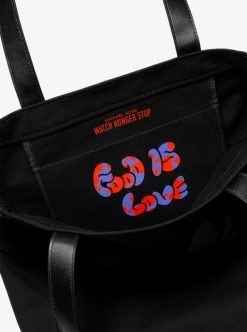 Vuodesta 2013 lähtien Watch Hunger stop -kampanjamme, joka tukee maailman ruokaohjelmaa (wfp) on auttanut toimittamaan yli 29 miljoonaa kouluruokaa lapsille ympäri maailmaa. Tämän vuoden kampanja, jonka otsikko on “rakkaus saa maailman pyörimään”, vahvistaa tehtäväämme lopettaa nälänhätä maailmanlaajuisella viestillä, joka toistaa uskomme, että “ruoka on rakkautta”. Tämä puuvillakankaasta valmistettu erikoispainoksen kantolaukku sisältää Newyorkilaisen multimediataiteilijan räätälöity printti tuo joskus graffitin inspiroiman pyörän ajatukseen. ja 100 % tuotoista menee apua tarvitsevien lasten ruokkimiseen Yhdistyneiden kansakuntien maailman ruokaohjelman (wfp) kautta.
