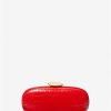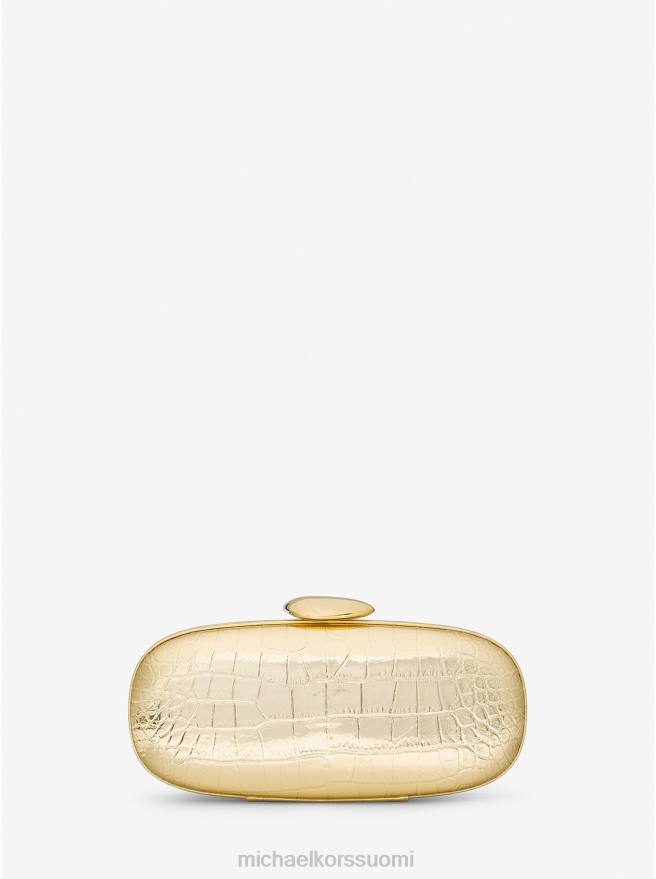 jossa on tyylikäs kiven muotoinen yläosa. Moderni tina minaudiere on tyylikäs linja ja irrotettava ketjuhihna. valmistettu italialaisvalmisteisesta krokotiilinahkasta, jossa on metallinen viimeistely – ja varustettu täyteläisellä mokkanahkavuorauksella – se täydentää täydellisesti sekä tuulista mekkoja että räätälöityjä pukuja.