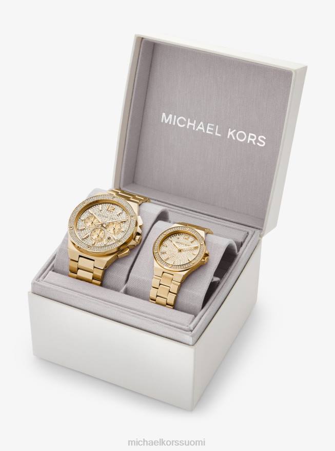 täydellinen lahja jaettavaksi aikaa yhdessä. hänen ja hänen lennox-kellomme on valmistettu kullanvärisestä ruostumattomasta teräksestä, ja niissä on kellotaulut, jotka on valaistu allover pave -korosteilla. pakattuna tyylikkääseen laatikkoon, se sopii täydellisesti yhteen.