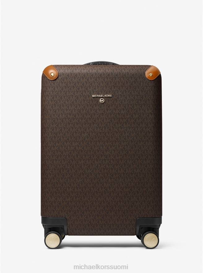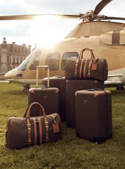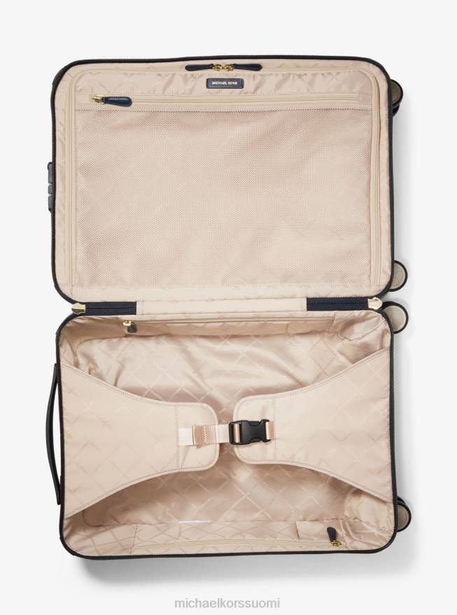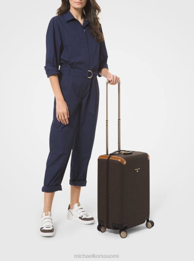 logoprintillä varustettu kanvaslaukkumme on ensiluokkaisen tyylin määritelmä. Tässä käsimatkatavarassa on vahvistetut nahkaiset kulmat ja tyylikkäät laitteistot, ja siinä on 360-pyöräiset pyörät ja se avautuu lokeroituun sisätilaan pitämään olennaiset asiat paikoillaan pitkien lentojen aikana.