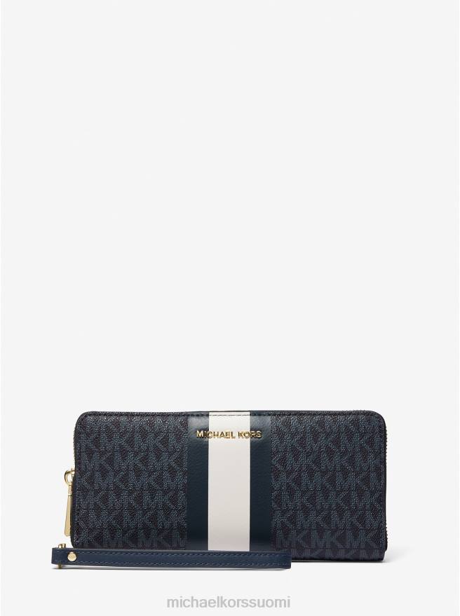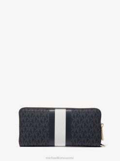 taiva tapa matkustaa kevyesti, tässä mannermaisessa lompakossa on sisäiset korttipaikat ja erillinen puhelintasku. Suunniteltu kestävään, logopainatuksella päällystettyyn twilliin, jossa on kontrastiset keskiraidat ja kätevä rannehihna, se on toiminnallista luksusta parhaimmillaan.