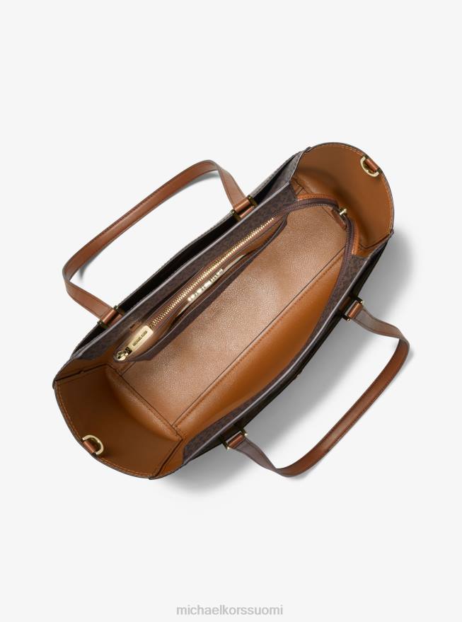 maisie 3-in-1 -kangaskassi on monipuolinen lisävaruste, joka vie sinut helposti päivästä iltaan. Käytä tunnuskuvioista kantolaukkua sellaisenaan lisätäksesi välitöntä kiillotusta toimistovalmiuteen – tai kiinnitä kirjekuoren kytkin etutaskuun saadaksesi ripaus uutuutta. illanviettoon tai päivinä, jolloin haluat matkustaa kevyesti, kanna yksi irrotettavista pusseista yksin.