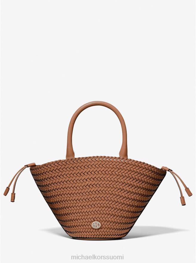 kun kyse on tyylikkäästä kokonaisuudesta, käsilaukkusi on aivan yhtä tärkeä kuin täydellinen ulkoasu ja kengät. silmiinpistävä audrey market -laukkumme on valmistettu italiassa kudotusta nahasta sileällä reunuksella, ja siinä on vain ripaus kiiltävää laitteistoa kiillotettua viimeistelyä varten. kiristysnyörillinen yläosa avautuu ja paljastaa tilavan sisustuksen, joka mahtuu päivän tarpeisiin. anna sen levätä täysin valkoista mekkoa vasten.