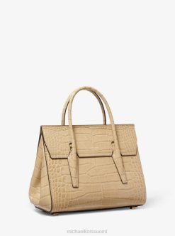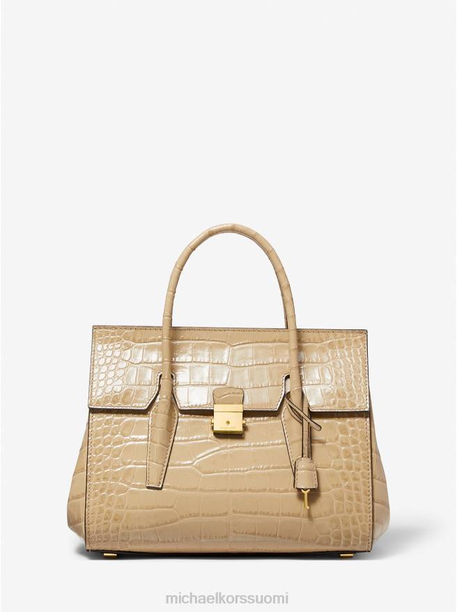 ”Campbell-laukku on ajattoman ja käytännöllisen tyylikkyyden huippua. se on laukku, joka sopii elämään tien päällä, ja siinä on kaikkea rennommasta loistoisimpaan”, sanoo michael kors. Tämä pohjimmainen laukku on valmistettu hienosti Italiassa krokotiilikuvioidusta nahasta, ja siinä on vähän varusteita ja mokkanahkavuorattu sisäpuoli, kun taas push-lock-kiinnitys paljastaa taskullisen sisustuksen, johon mahtuu siististi päivän tarpeet. anna sen lisätä hienostuneen eleganssin tuntua kauden pehmeästi räätälöityihin mekoihin ja paljon muuta.