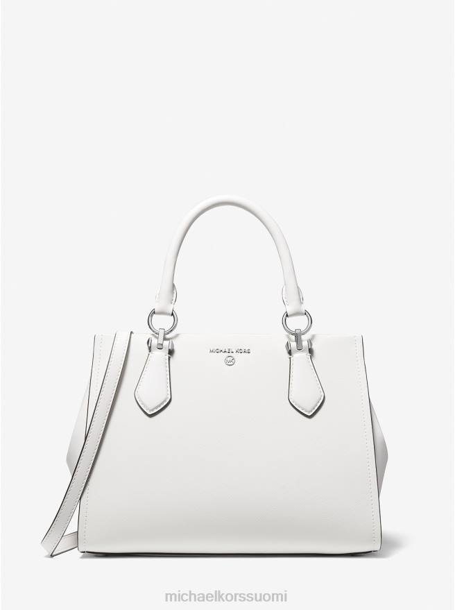 kompakti kumppani, jossa on tarpeeksi tilaa kaikelle, rakenteellinen marilyn-laukkumme on osoitus kiillotetusta helppoudesta. se on valmistettu saffiano-nahasta ja avautuu vuoratuun sisäosaan, jossa on erilliset taskut puhelimelle, lompakolle ja muille pienille tavaroille. kiinnitä sileä hihna käyttääksesi sitä ristissä.