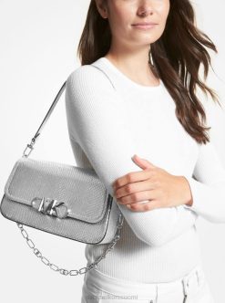 kiillotettu ilme aina tyylikkääseen olkalaukkuun. Parker tarjoaa virtaviivaisen siluetin metallista käärmekuvioitua nahkaa ja läppäsuljinta empire-tarvikkeilla. avoautossa on kaksi vaihdettavaa hihnaa, yksi nahkainen ja toinen ketjulenkki, useita kantovaihtoehtoja varten. kurottaa sitä koko päivän ja helposti.