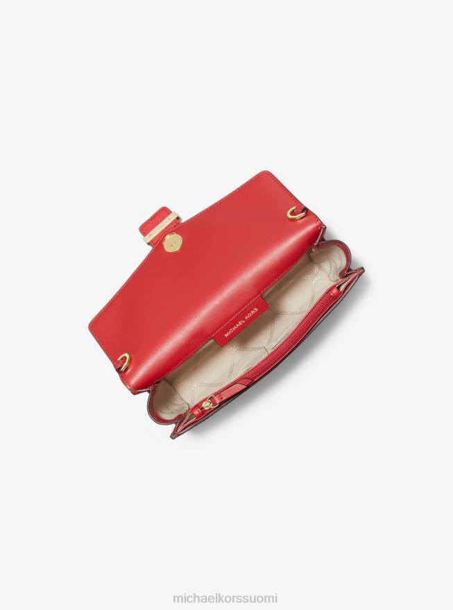 pyramidin muotoinen laitteisto antaa penelopekytkimelle ylellistä asennetta. se on valmistettu saffiano-nahasta tyylikkäässä kirjekuoren muodossa, joka on mitoitettu kuljettamaan mukana liikkeellä olevia tarvikkeita. rakastamme sen mukana tulevaa ketjulenkkihihnaa, joten voit olla hands-free juhlissa ja tapahtumissa.