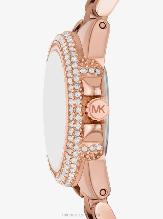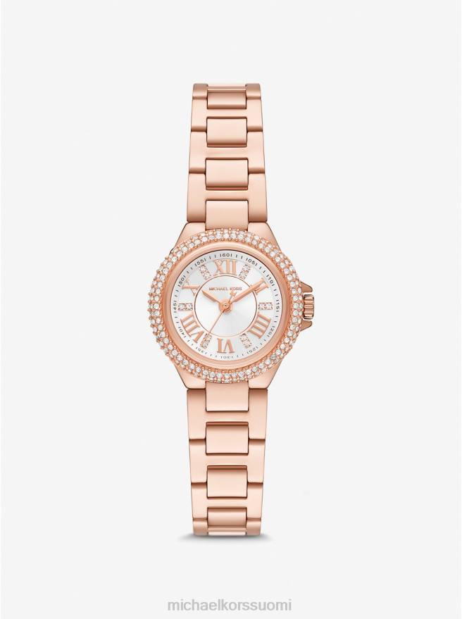 valot, kamera, camille. astu sisään häikäisevään minikelloimme, jossa on yksi muodin suosikkikelloista. Tässä upean toiminnallisessa ilmeen viimeistelyssä on perinteisiä roomalaisia numeroita ja ruusukultan sävyinen rannekoruhihna. pue se päälle suosikkimekkosi kanssa ja nosta ulkonäkösi arkisesta erikoiseen.