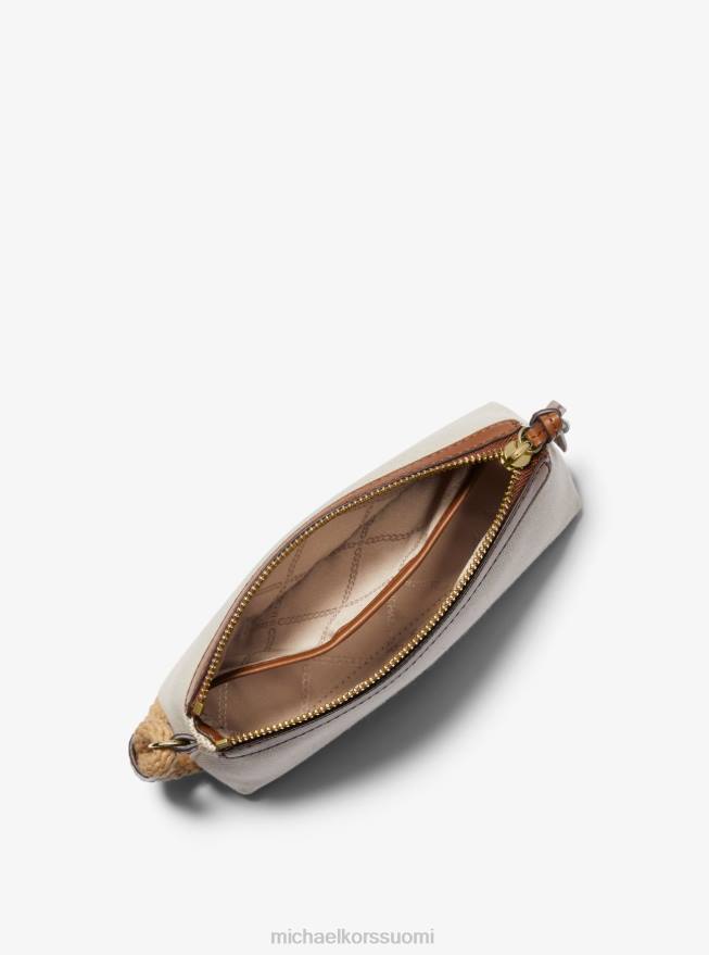 suunniteltu kankaalle, jossa on sileät aksentit. Talia-ranneke on rikas rakenne ja viehätys. se avautuu vetoketjulla suljettavaksi pussiksi, jossa on liukutasku, johon mahtuu helposti käsiksi tarvittavat tavarat. kanna sitä köysihihnasta niinä päivinä, kun haluat matkustaa kevyesti.