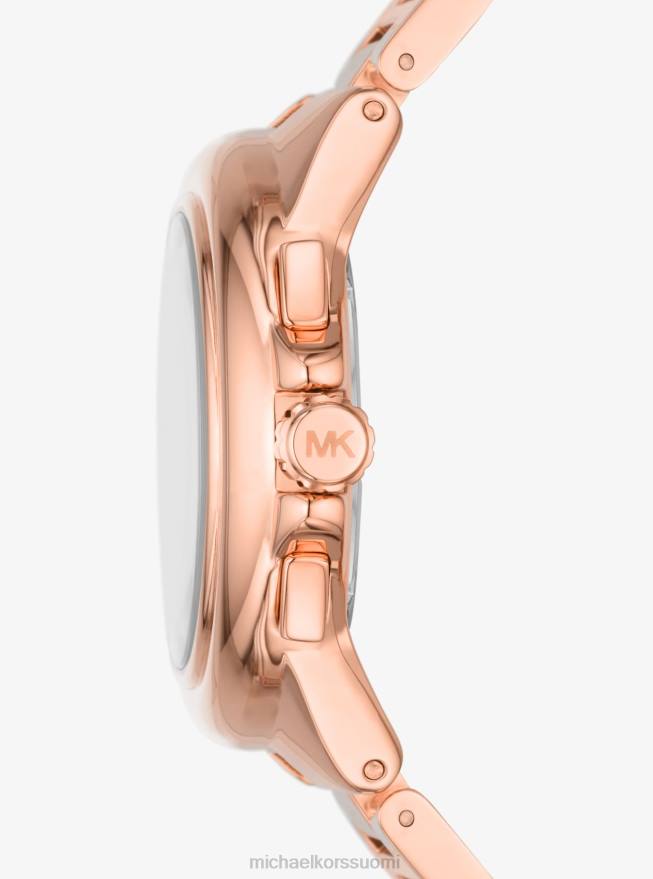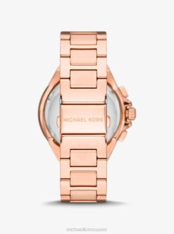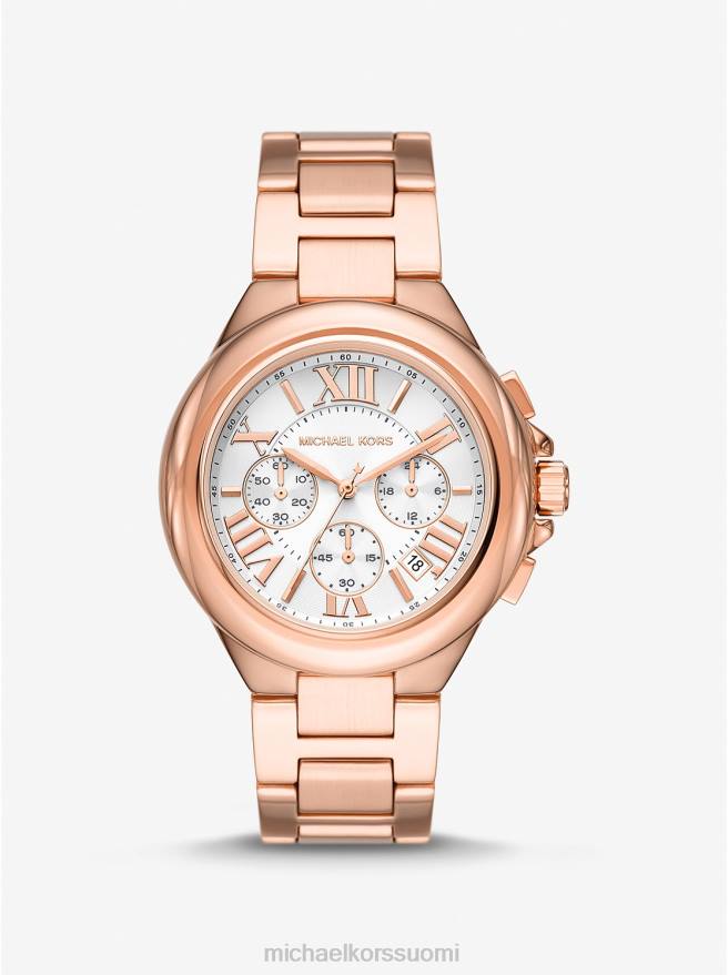 esittelyssä camille-kello: tyylikäs mutta lumoava lisä vaatekaappiisi. Tässä kellossa on sileä ylärengas, hillityt alikellot ja ruusukultan sävyinen rannekoruhihna, joten tämä kello on välitön klassikko. pue se kauden painettuihin mekkoihin saadaksesi kiillotettua ilmettä.