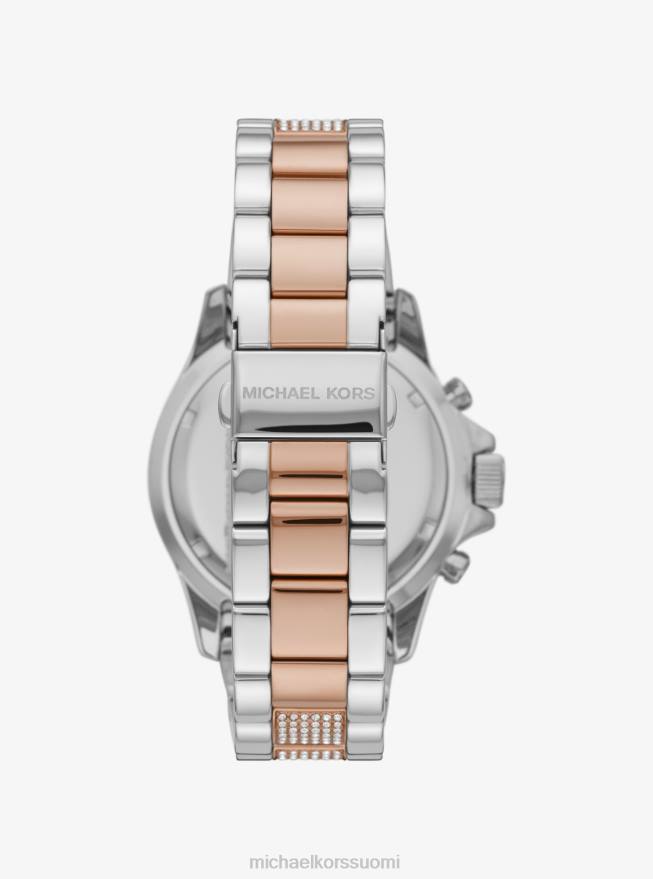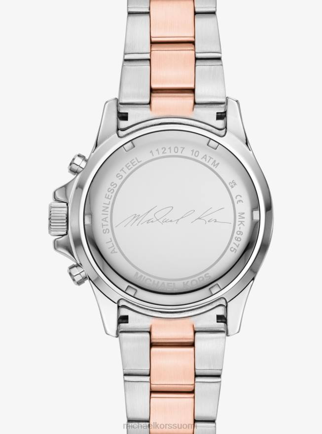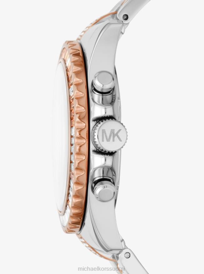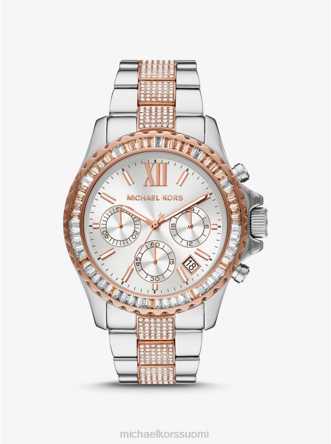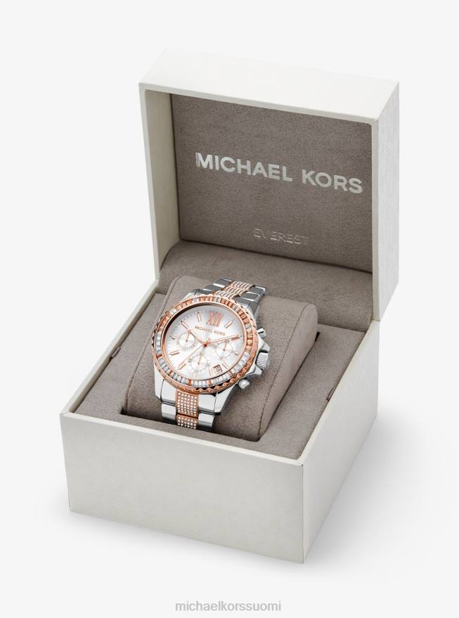 Ikoninen everest-kello, joka on päivitetty moderneilla, ylisuurilla patonkikivillä. kaksisävyinen ruostumattomasta teräksestä valmistettu kotelo lupaa kestää loputonta kulumista ja käännöksiä paljastaen michaelin tunnusmerkin, kun taas täydentävässä kellotaulussa on kronografin yksityiskohdat ja päivämääräikkuna lisätoimintoja varten. rakastamme sitä, kuinka päällystysosat heijastavat hellästi valoa.