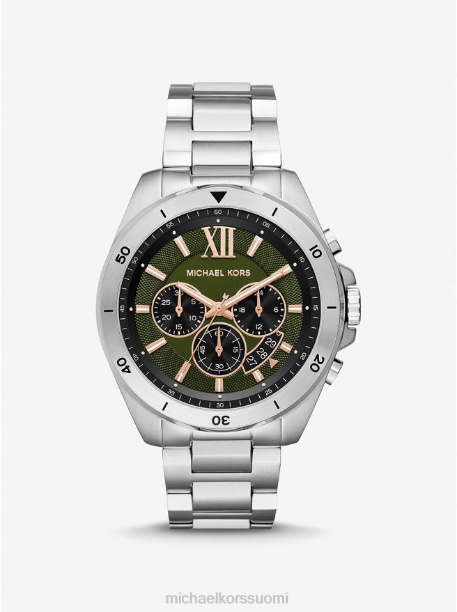 brecken-kellossamme yhdistyy klassinen siluetti tarkkuudella ja tyylillä. Tämä ylimitoitettu kello on suunniteltu hopeanvärisestä ruostumattomasta teräksestä kontrastiväreillä oliivinvihreää kellotaulua vasten, ja siinä on takymetri-asteikko ja kronografimekanismi ajan mittaamiseksi etäisyydeltä.