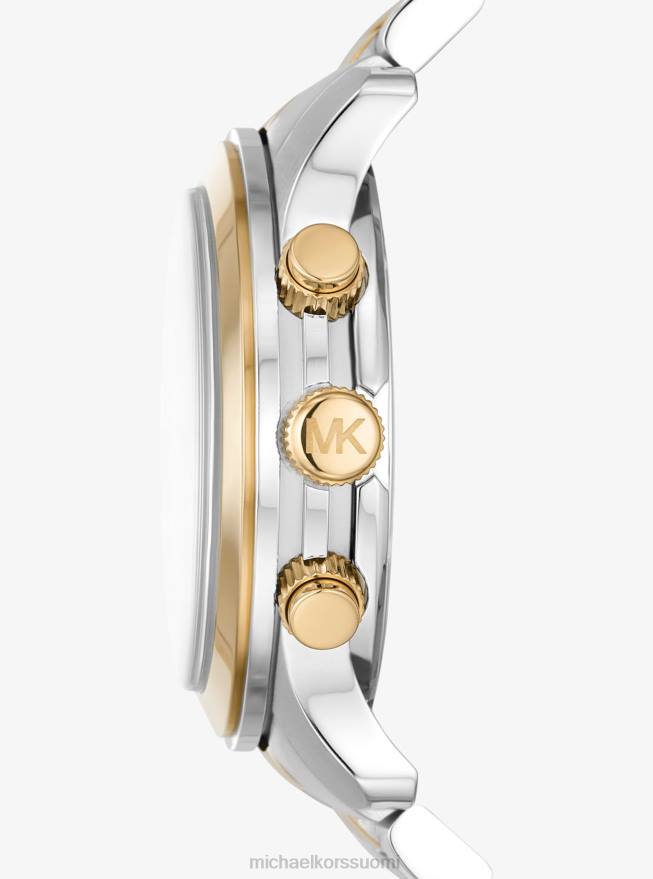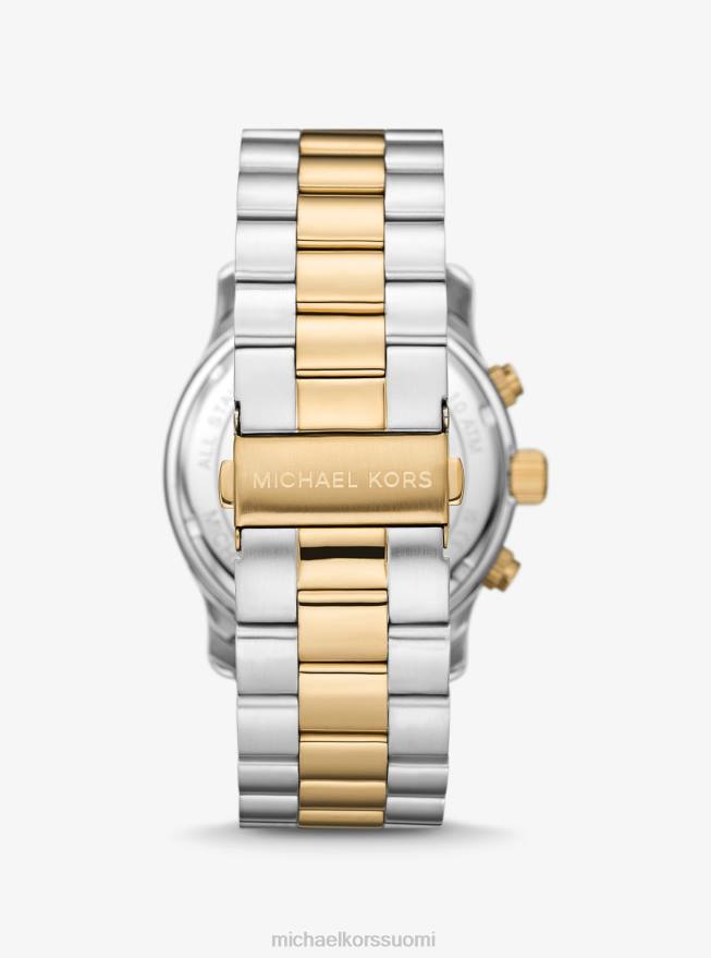 kiitotiekellomme on monivuotinen suosikki, ja se on päivitetty tuntokuvauksella, joka tarjoaa rohkean mutta hienostuneen viimeistelyn. tämä erittäin tyylikäs tyyli on valmistettu kaksisävyisestä ruostumattomasta teräksestä, jossa on kiillotettu rannekorun hihna, ja siinä on käytännölliset apukellot tarkkaa ajankäyttöä varten.