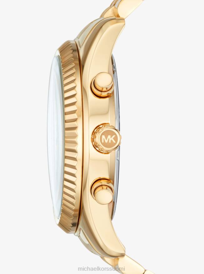 suunniteltu tavoitteellista miestä ajatellen, lexington-kellomme tuo tyylikkään ja virtaviivaisen aivan uudelle tasolle. viisto kullan sävyinen ruostumattomasta teräksestä valmistettu kehys ja rannekorun hihna tarjoavat tuntoon tuntuvaa tekstuuria, kun taas päivämäärätoiminto ja ajanoton kellotaulut täydentävät dynaamisen kappaleen.