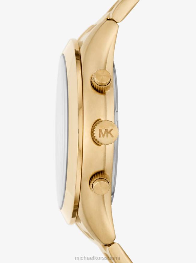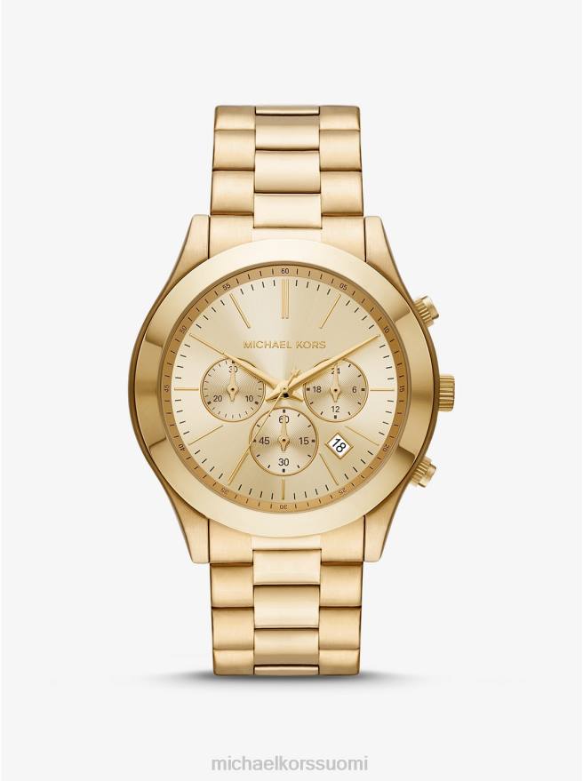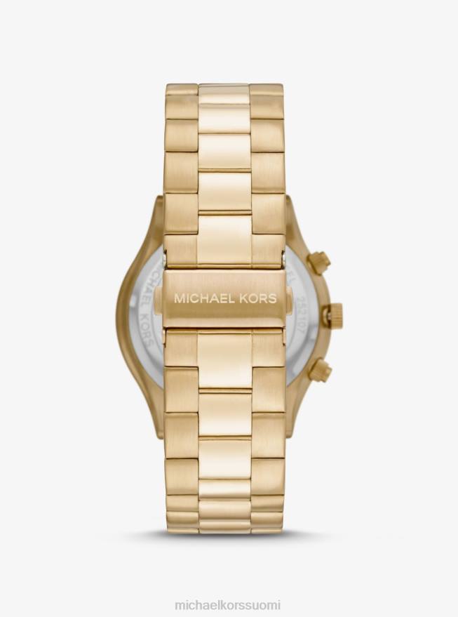 ikuinen suosikki, ikoninen ohut runway-kellomme on päivitetty kullanvärisellä ruostumattomalla teräksellä, ja siinä on yhteensopiva kellotaulu, joka lisää yksiväristä vetovoimaa. pinota sitä käsivarrella täynnä rannekoruja vapaapäivinä tai käytä sitä yksin, kun menet toimistoon.