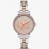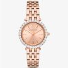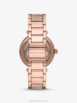 kiinnitä huomiosi parkkeriin: tämä tyylikäs kello on koristeltu kimaltelevilla päällystyskorkeilla, jotka luovat eleganttia keskustan tuntua. ruusukullan sävyinen ruostumattomasta teräksestä valmistettu kotelo ja rannerengas luovat ajattoman muotoilun, kun taas minimalistisessa näytössä on yksityiskohtainen hillityt alikellot, jotka lisäävät toimivuutta. käytä tätä naisellista kelloa kaiken kanssa kaapissasi, yksinkertaisesta neuloksesta ja farkuista cocktailmekkoon.