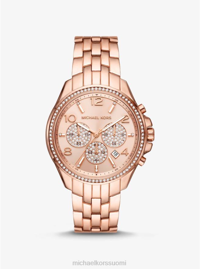 joka määrittelee silmiinpistäviä design-elementtejä, ruusukultan sävyinen pilottikello luo arjen glamouria uudelleen. Pave-pinnoitetut ajanoton kellottimet ja ketjulenkkirannekkeen hihna yhdistävät ylellisen viimeistelyn. käytä sitä yksin tai pinoa sitä yhteensovittavilla tyyleillä saadaksesi tyylikkään vaikutelman.
