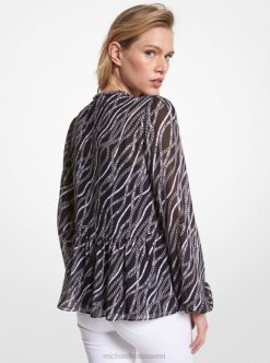 valmistettu osittain kierrätetyn venytysviskoosin sekoituksesta. Tämä toppi on tutkimus edistyksellisyydestä. pilakaulan siluetin määrittelevät hohtavat astor-nastat, jotka heijastavat valoa joka kulmasta. luo hetken ilme sopivalla kynähameella ja tarvikkeilla.