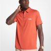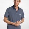 Tämä uv-suojaava poolopaita on moderni versio golfista. Se on leikattu hengittävästä, hikeä siirtävästä ja hajua estävästä kankaasta, johon on painettu abstrakti geometrinen kuvio. käytä sitä auki housujen päällä – sivuhalkiot varmistavat, että se istuu tasaisesti vyötärönauhan päällä.