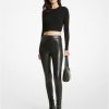 joustavassa nahassa, jossa on aavistuksen joustavuus, nämä izzy-housut esittelevät levenevän siluetin ja saumoja polvissa. leikattu helma tekee niistä täydellisen täydennyksen esitysdioihin.