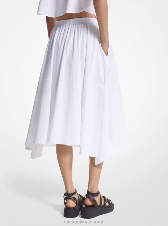 valmistettu luomupuuvillapopliinista, jossa on ripaus joustavuutta käytön helpottamiseksi. Tässä midihameessa on nenäliinahelma, joka tuntuu täysin modernilta. se on viimeistelty saumataskuilla ja joustavalla vyötäröllä. Se on rento valinta, joka on erityisen tyylikäs yhdistettynä yhteensopivaan paidan kanssa.