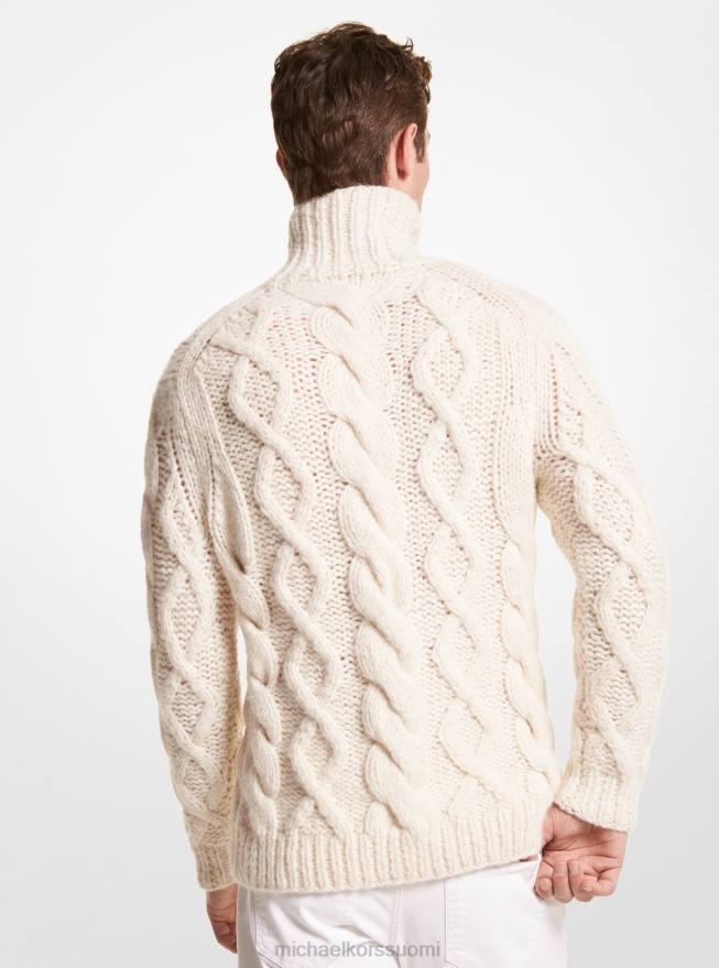 tämä pusero esittelee paksuja kaapeliompeleita ja ylevän villapaita, joten se pitää sinut taatusti lämpimänä. se on kehrätty alpakasta merinovillalla ja nylonilla, mikä on erityisen pehmeää ja mukavaa käyttää. neutraali sävy sopii helposti muuhun vaatekaappiisi.