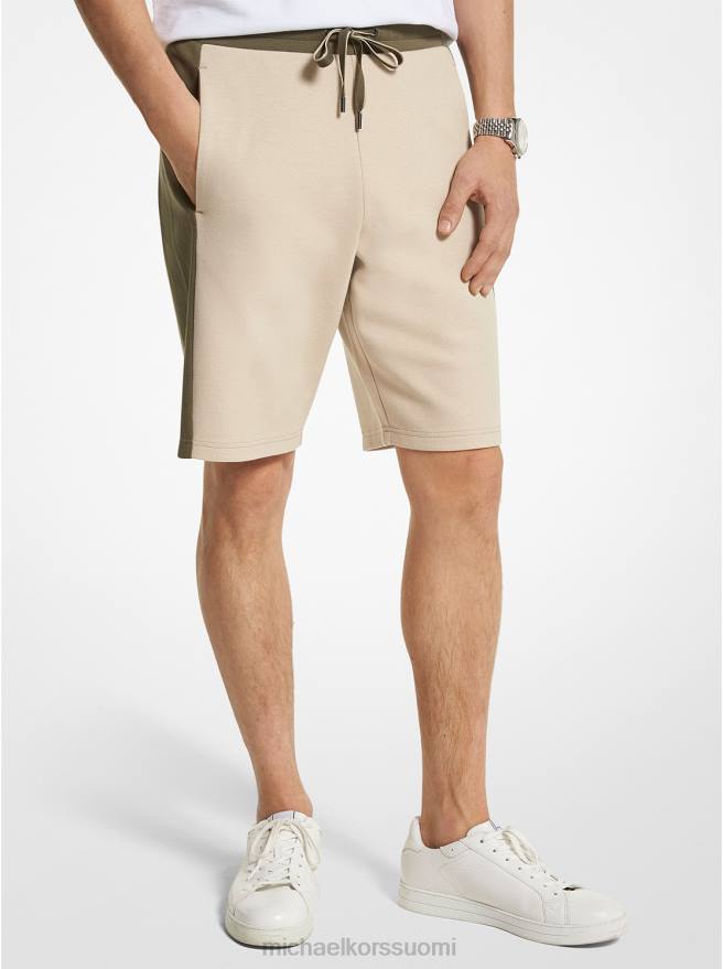 vahvista viikonlopputyyliäsi näissä keskipainoisissa neuleshortseissa, jotka on valmistettu mukavasta puuvillasekoitteesta. kaksisävyiset upotukset sivuilla luovat visuaalista mielenkiintoa, kun taas säädettävä vyötärönauha varmistaa mukautetun istuvuuden. saumalliset sivutaskut tarjoavat tyylikkään mutta käytännöllisen viimeistelyn.