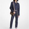 90-luvun inspiroimia siluetteja hyödyntävässä denimmekossa on leveä vyö, hyödylliset taskut ja napit sen a-linjaisen siluetin edessä. Yhdistä asusteet ja kengät ikeen ketjulenkkien kanssa saadaksesi lujaa ja ylellistä tunnelmaa.
