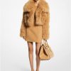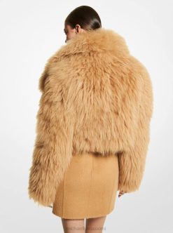syksy/talvi 2022 kiitoradalla nähtynä tämä silmiinpistävä bolero on muodin viehätyksen ja toimivuuden huippu. muhkeat tekoturkikset poimivat näyttämään ylellisen viimeistelyn, kun taas dramaattinen kaulus ja katkaistu helma lisäävät raikasta, välinpitämätöntä asennetta. jäljittele ilmettä kamelimekolla ja pumpuilla saadaksesi lisäannoksen glamouria. valmistettu Italiassa.