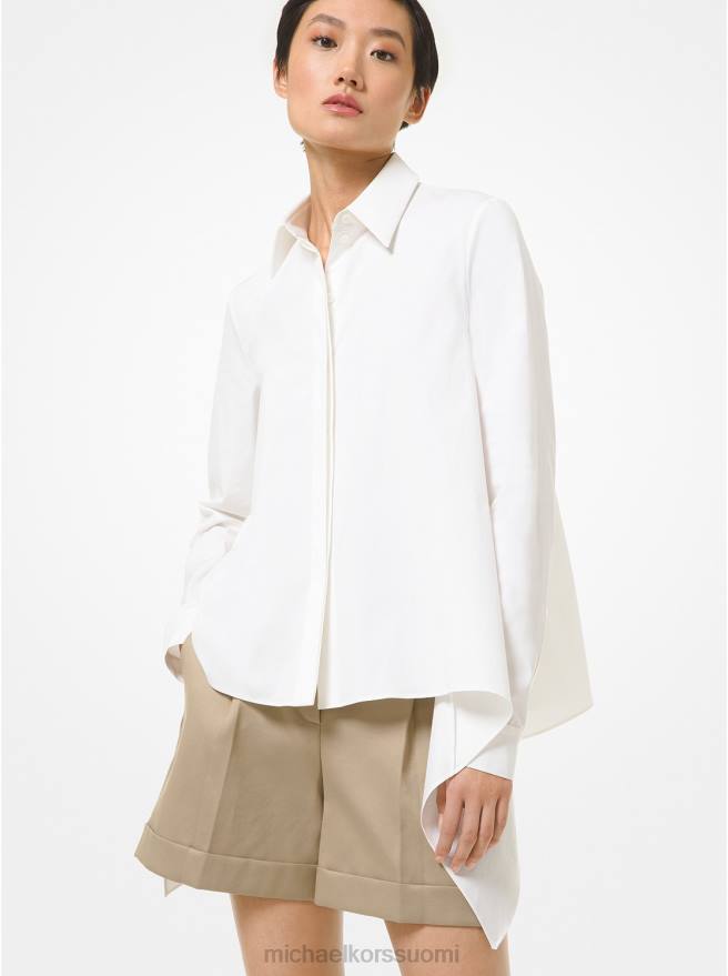 nykyä kauden hienostuneelle helppoudelle. Tämä napitettava paita on räätälöity luomupuuvillapopliinista, jossa on aavistus joustavuutta. epäsymmetrinen helma herättää modernia mielenkiintoa, kun taas sen rento siluetti leviää vaivattomasti terävien räätälöityjen ja denim-kankaiden päälle.