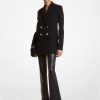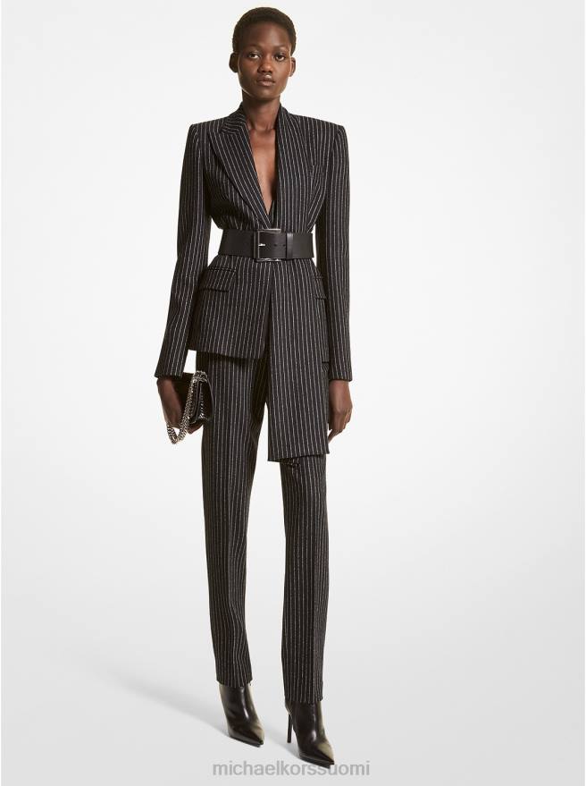 epäsymmetrinen helma ja jäsennellyt olkapäät lisäävät modernin ja androgyynin viimeistelyn tähän stretch-flanelliseereihin. osa syksyn/talven ’22 mallistoa, siinä on kontrastiset neularaidat, läppätaskut ja vesiputousnapit hihansuissa, jotka lisäävät sen miesten vaatteiden inspiroimaa vetovoimaa. käytä sitä Michaelin tarkoittamalla tavalla yhteensopivien housujen ja vyötäröllä.