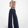 michaelin tunnusomaiset samantha-housut ovat ajattomia. Tämä italialainen pari on räätälöity kaksoiskreppisaabelista, ja siinä on vyölenkit, takataskut ja terävä, minimalistinen istuvuus ja tuntu.