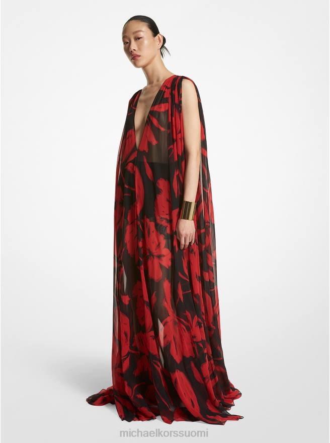 silkkisifonilla romanttisen, eteerisen verhon luomiseksi. Tämä kaftaanipuku on korostettu iltatyyli, joka vangitsee urbaanin lomakohteen tunnelman. Se on painettu kauden siveltimellä kukka-aiheella, ja siinä on syvä v-pääntie ja lattiaan ulottuva pituus, joka korostaa sen vaivatonta ulkonäköä. Pidä rohkeat kukat keskittyneenä minimaalisilla lisävarusteilla. valmistettu italiassa.