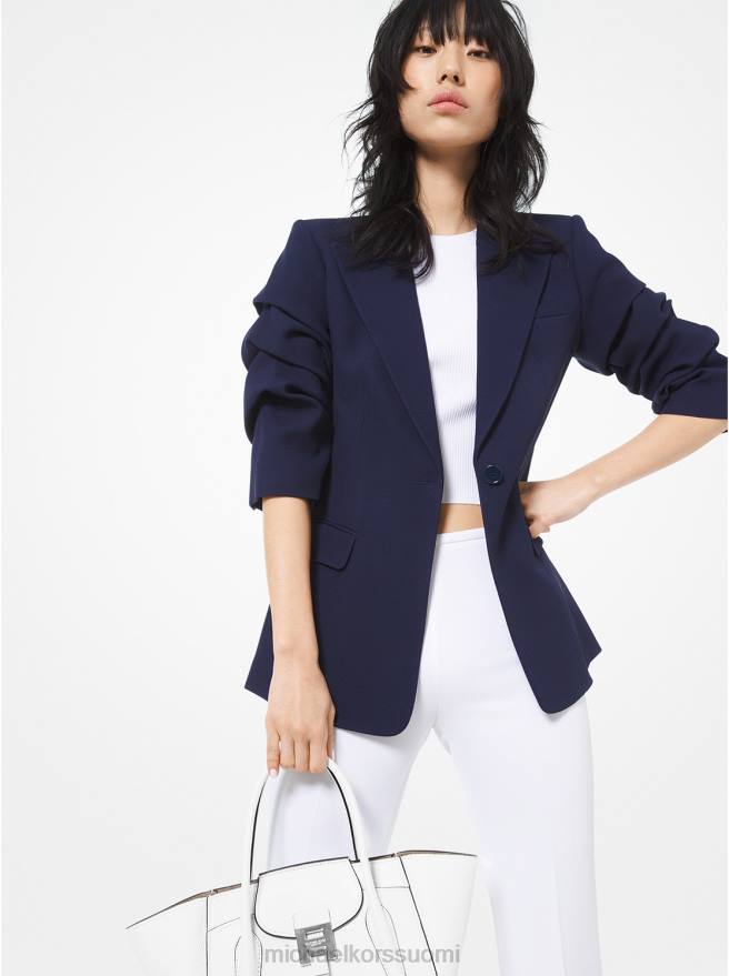 murskatut hihat tuovat modernia vetovoimaa tälle yksinappulaiselle bleiserille, kun taas kaksinkertainen kreppisapeli ja nipistetty vyötärö kertovat huolellisesta italialaisesta räätälöidystä. täydennä moderni kokonaisuus valkoisilla housuilla ja bodylla.