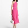 tämä tämän hetken mekko on naisellinen, imarteleva ja hienostunut. valmistettu tuulista georgettesta, siinä on ketjulenkkiriimu kaula-aukko ja sivuleikkaukset, jotka korostavat vyötäröäsi. pehmeästi laskostettu hame lisää volyymia. muotoile omasi bleiserillä ja veistoksellisilla korkokengillä.