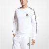 tämä puuvillasekoitteinen collegepaita tarjoaa viileää mukavuutta kaksinkertaisen neulerakenteensa ansiosta, kun taas kontrastivärinen logoteippi parantaa urheilullista profiilia. kerro se t-paidan ja hupparin päälle kuntosalille tai kadulle.