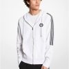 tyylikäs mutta käytännöllinen. Tämä vetoketjullinen villapaita on valmistettu pehmeästä puuvillasekoitteesta. kiristysnyörillä oleva huppu lisää järkevän viimeistelyn, kun taas kontrastivärinen logoteippi antaa tunnusomaisen käänteen. kerro se t-paidan ja koordinoivien lenkkeilijöiden päälle rentoina päivinä.