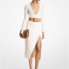 muotoiltu ylellisestä pitsistä imartelevassa a-linjaisessa siluetissa. Tämä pyöreä hame on kevyesti laskostettu eteeristä liikettä varten. rusketuksen sävyinen silkkivuori määrittelee entisestään kukkakuvion ja hilseilevän helman. se on silmiinpistävä valinta kevyen villapaidan ja toisiaan täydentävien sandaalien kanssa.