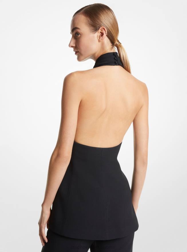 huippusuunnittelu ja hienoin käsityötaito yhdistyvät tässä kaksinkertaisessa kreppiriimutakissa. Tässä kevään/kesän 2023 kiitoradan mallina olevassa modernissa topissa on napit edessä, tikkainen liivi ja läppätaskut, jotka korostavat entisestään naisellista siluettia. Kanavoi kauden urbaania glamouria muotoilemalla se rentoilla housuilla. valmistettu italiassa.