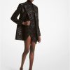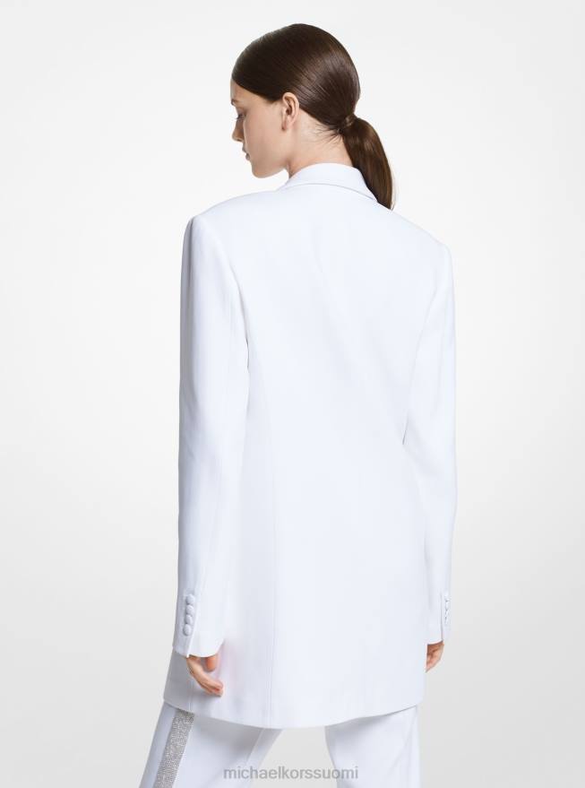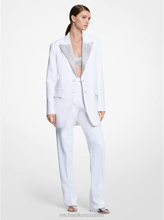 kevään 22 kiitoradalla erottuva hohdokas smokkibleiseri, jossa on käsin kirjailtuja kristallikäänteitä, jotka heijastavat hellästi valoa. Siinä on räätälöity vyötärö ja peitetyt nappikiinnitykset, ja se on leikattu italialaisesta kaksinkertaisesta kreppisaabelista, jotta se istuu tyylikkäästi ja rakenteellisesti. viimeistele kokonaisuus viimeistelemällä se koordinoivilla housuilla.
