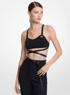 vaatetus Michael Kors malliston nahkaverhoillut kreppiliivit ja lyhyt bikinisetti musta naiset Z6823742
