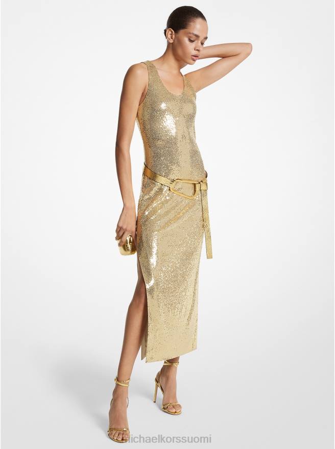 toista kiiltoa tässä minimalistisessa jersey-mekossa, jossa on kirjailtu tuhansilla hohtavilla paljeteilla. Ota inspiraatiota kevään/kesän 2023 kiitotien esityksestämme ja täydennä lookkia matalalla, kullanvärisellä vyöllä ja nilkkaremmikorkeilla samassa sävyssä. valmistettu italiassa.
