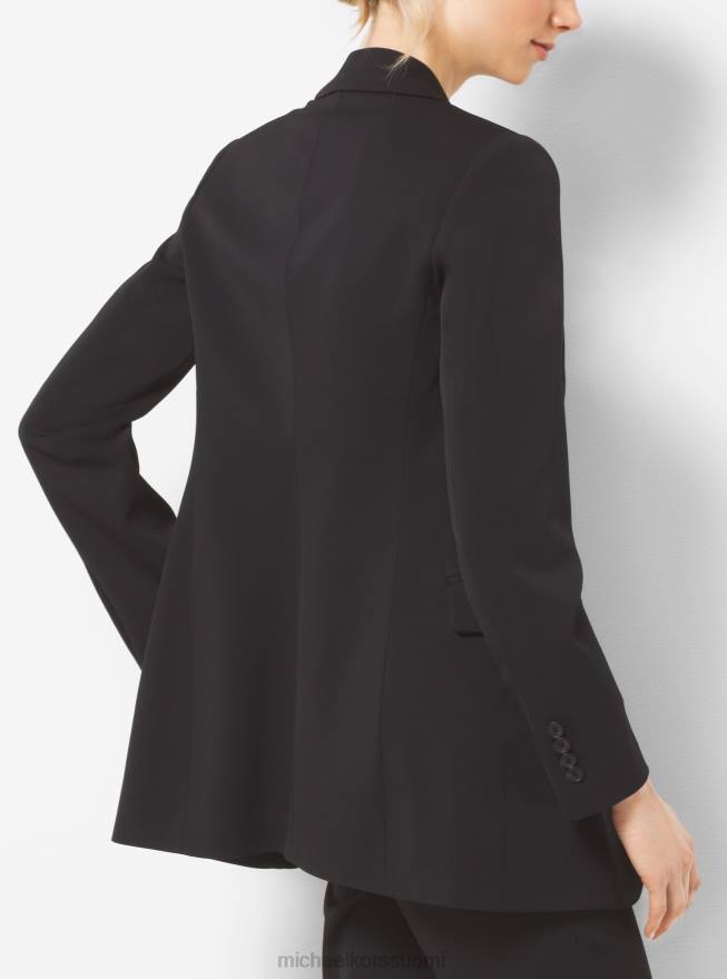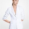 tämä terävä, ohut bleiseri on räätälöity joustavasta villasta, jotta se istuu ja tuntuu hienostuneelta. Tämä toimistotarvike on muotoiltu lovetuilla käänteillä, rannekorun pituisilla hihoilla ja yhdellä napinkiinnyksellä, joten se huokuu voimakasta kiillotusta kaikkiin tilanteisiin.