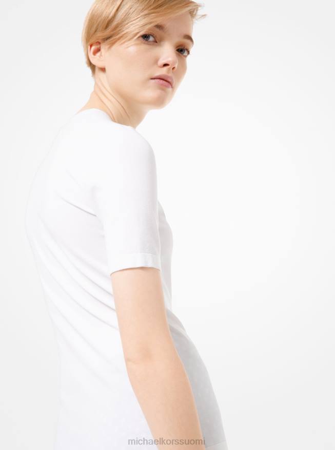 jokaiseen vuodenaikaan. Tämä pyöreäkaula-t-paita on leikattu pehmeästä joustavasta viskoosista toiselle iholle sopivaksi, ja se kiinnittää painetut housut, hameet, denim ja paljon muuta. käytä sitä yksin tai kerroksittain tyylikkään bleiserin alle.