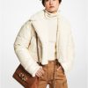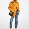 metallinahasta valmistettu halkeileva viimeistely, tämä lyhennetty takki on glamourin juhla. se on leikattu rennosti ja siinä on määrittäviä motoyksityiskohtia, kuten lovettu käänne, epäsymmetrinen vetoketju ja irrotettava vyö. rakastamme sitä kerrostettuna kauden vartaloa muotoilevien mekkojen ja muiden päälle.